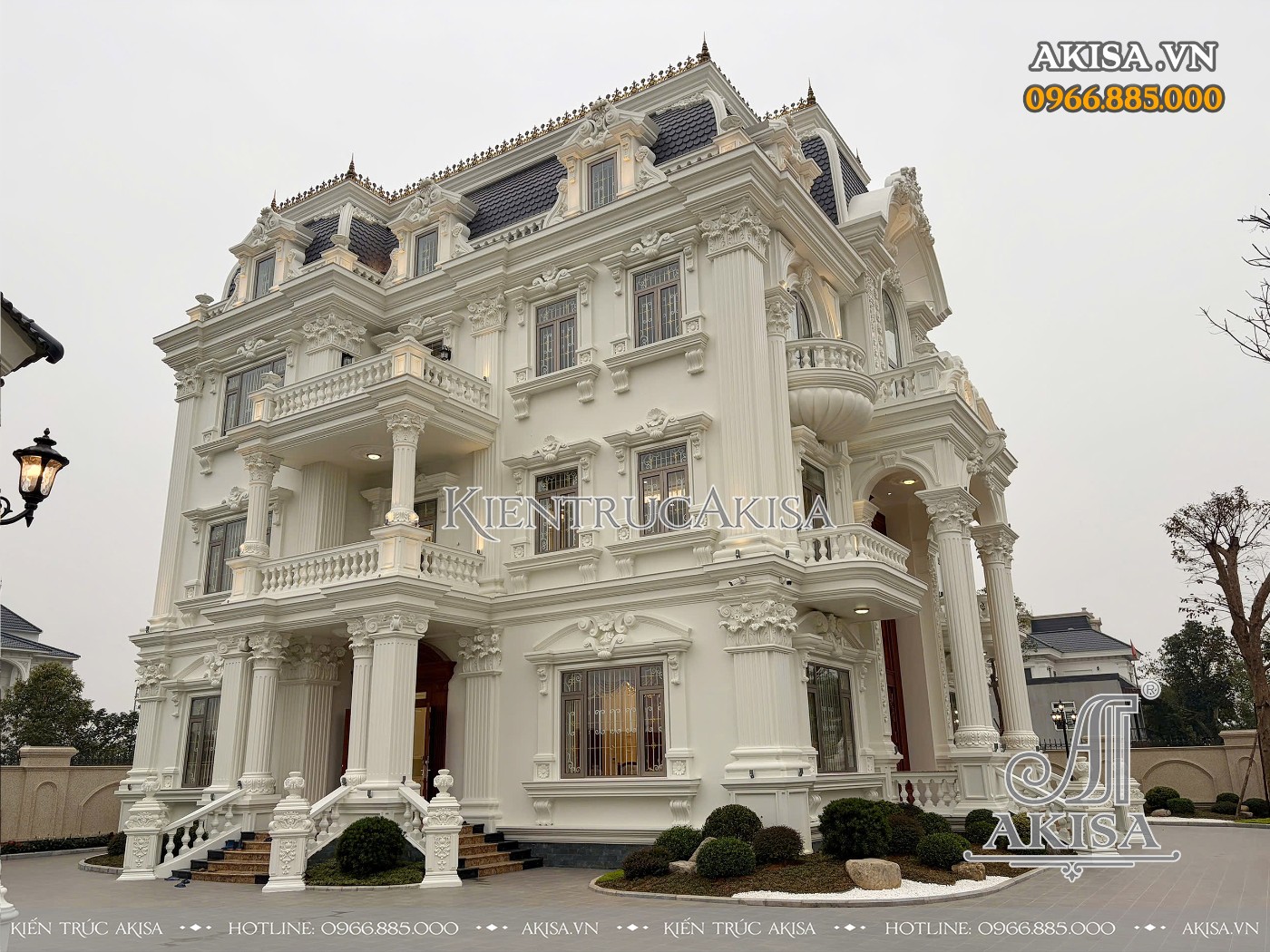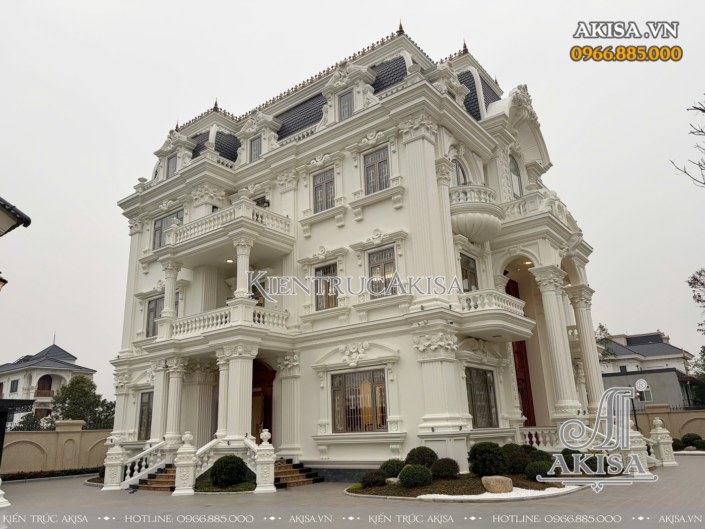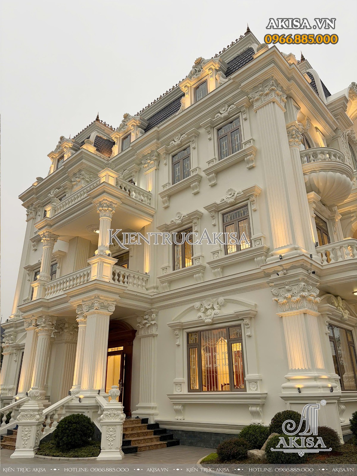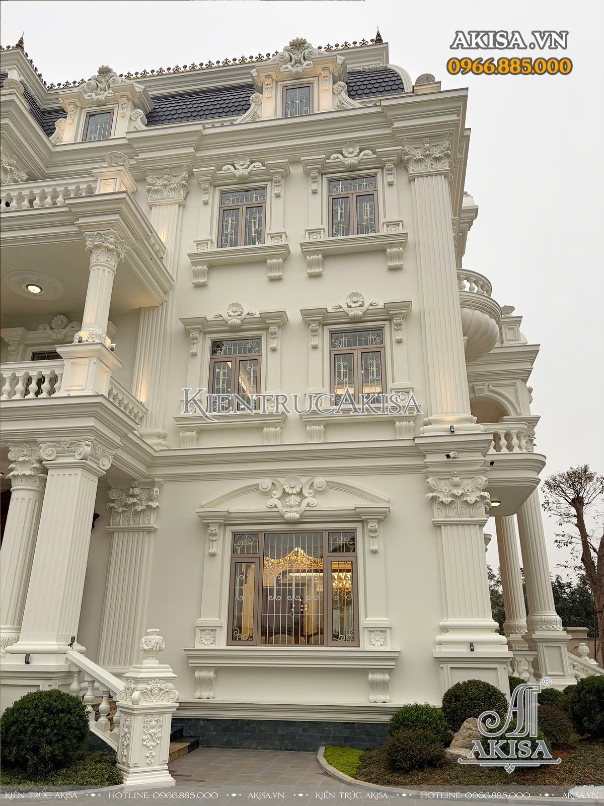 Trên đây là hình ảnh hoàn thiện kiến trúc biệt thự tân cổ điển 3 tầng tại Vĩnh Phúc. Mọi thông tin về kiến trúc - nội thất - phong thủy - xây dựng của công trình này, quý khách vui lòng liên hệ HOTLINE:0966.885.000 để được giải đáp & hỗ trợ chu đáo.